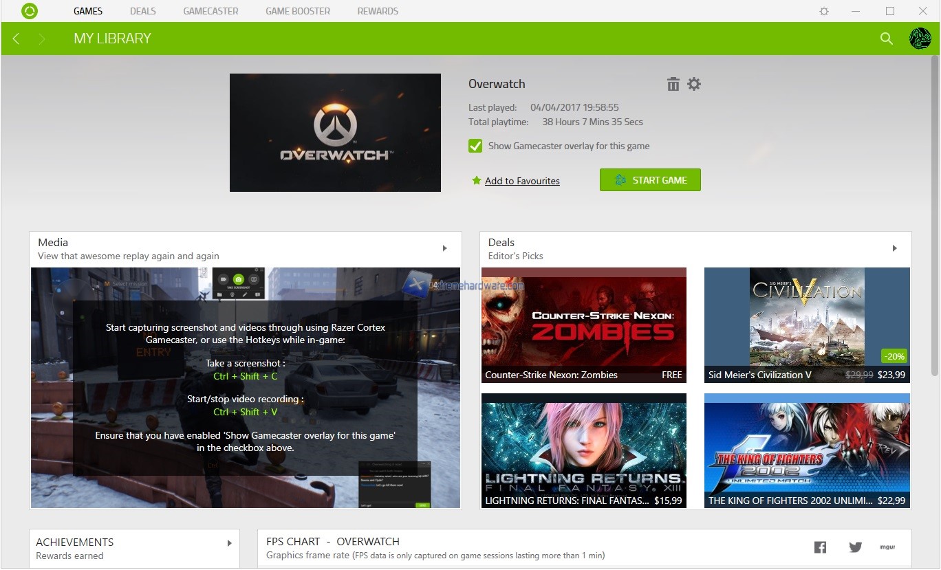 In ‘’Games’’ avremo la nostra libreria personale di quei giochi installati. Ovviamente solo alcuni titoli come Paladins, League of Legends, DOTA 2, Counter-Strike: Global Offensive e OverWatch sono e saranno utilizzabili per guadagnare zSilver. In questo caso il nostro principale gioco è Overwatch. Potremo tenere traccia dei zSilver giornalieri guadagnati e attivando il grafico a lato vedere gli FPS che faremo durante tutta la sessione di gioco oltre che le caratteristiche principali del PC.