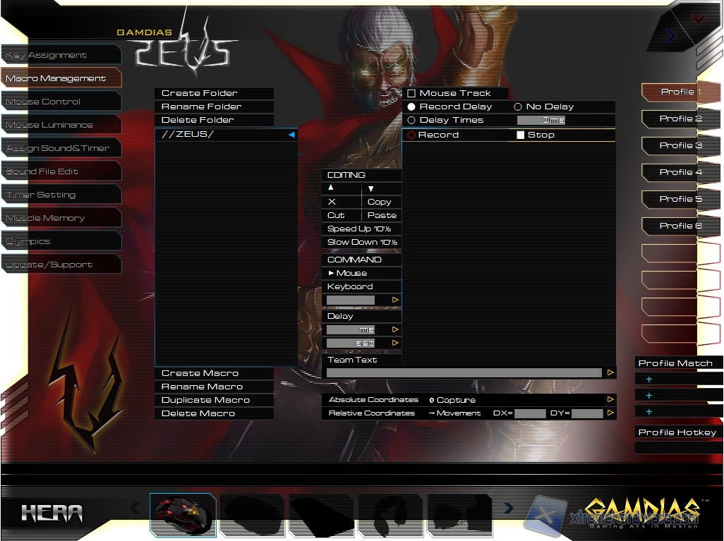 Il Menù successivo è “Macro Management” dove potremo creare le nostre Macro. Le Macro possono essere create, eliminate o duplicate; inoltre, il sistema di Macro ci permette di registrare e di impostare un ritardo di esecuzione sia per quanto riguarda la tastiera che il mouse (ricordiamo che il software Hera 2.0 come abbiamo detto è unico per vari prodotti GAMDIAS). Il pannello è così complesso che dovrete, anche qui, studiarvelo bene. Il livello di gestione comunque è davvero alto e anche i più esperti avranno pane per i loro denti.