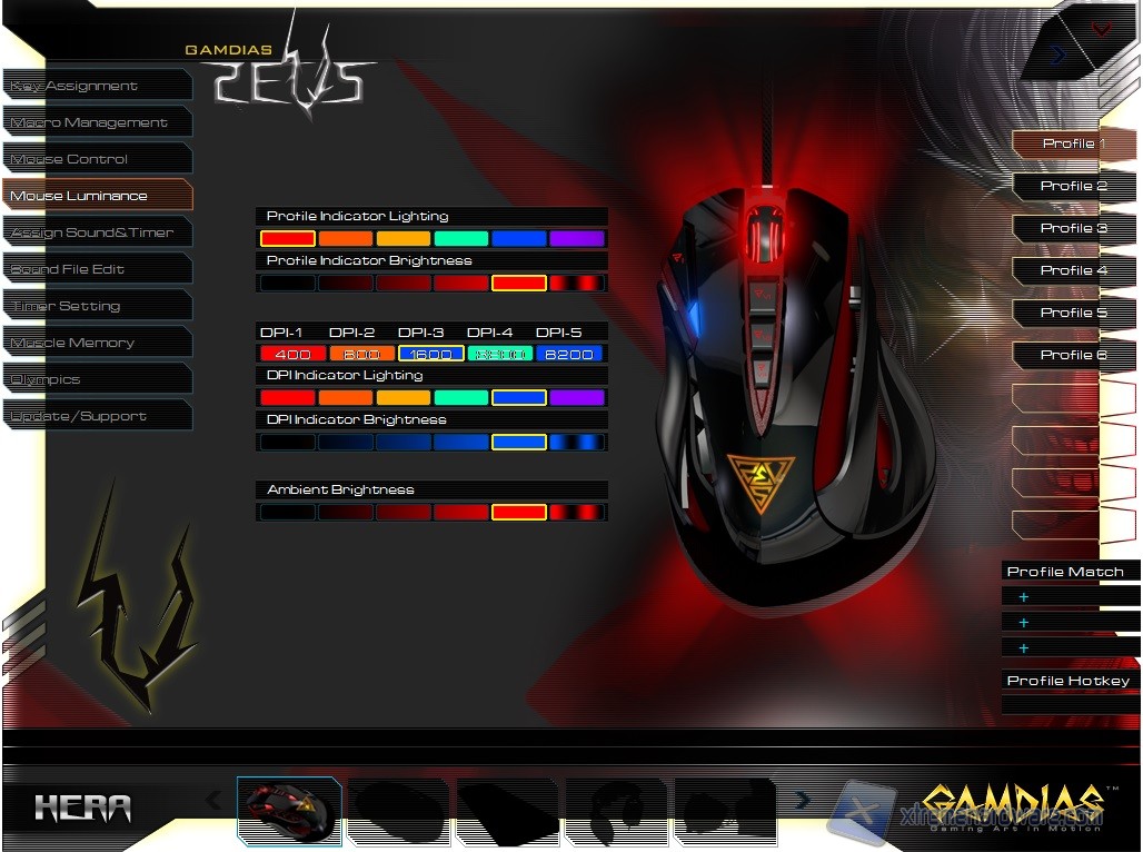 A seguire troviamo il Menù “Mouse Luminance” dove avremo la possibilità di regolare l’intensità della retroilluminazione, che ricordiamo essere rossa per i LED presenti nella parte inferiore e frontale del mouse, oltre che di variare il colore del LED dello Scroll e quello nella parte destra del mouse in base alla risoluzione impostata (DPI) o al profilo utilizzato. Non manca inoltre la funzione nonché livello pulsante che renderà l’effetto davvero particolare e caratteristico come presente anche sulla GAMDIAS Hermes Ultimate.