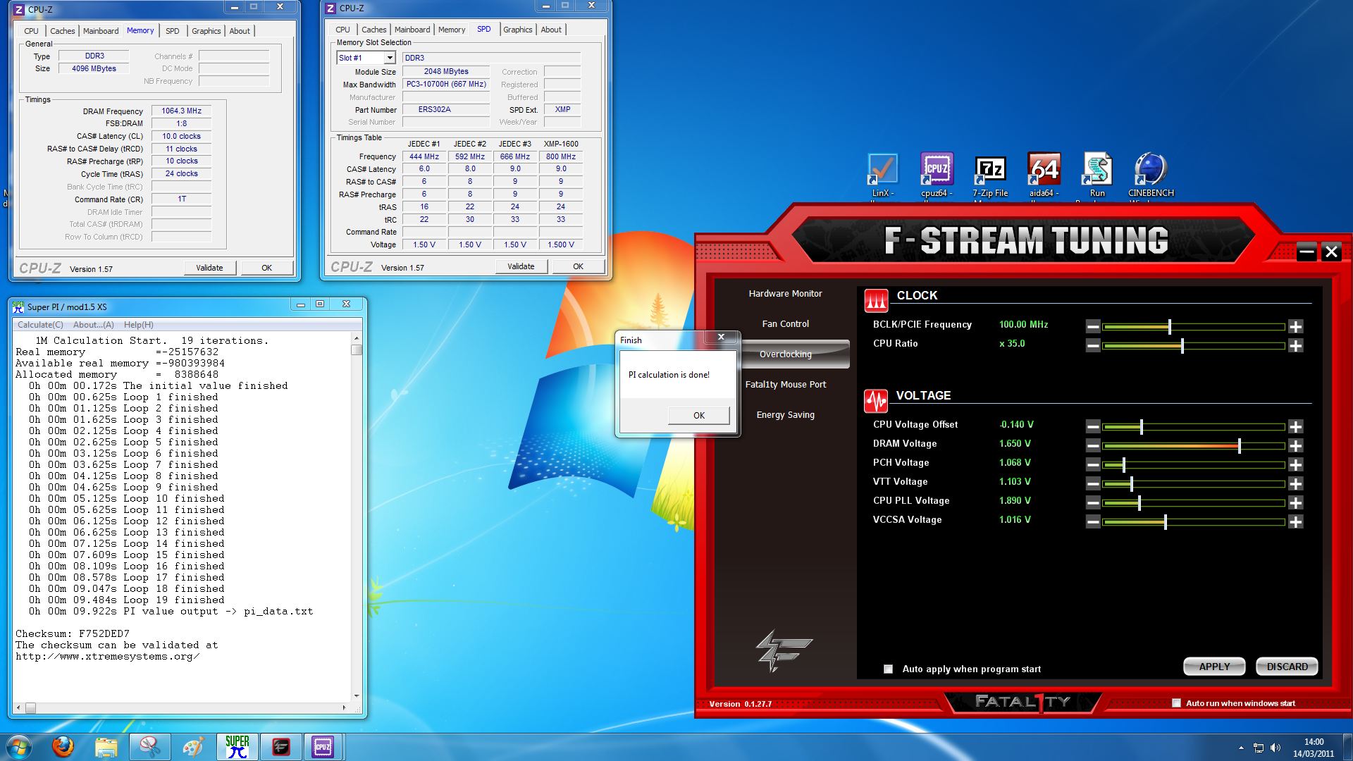 A conferma di quanto appena sottolineato nel paragrafo precedente, settando il vDIMM a 1.65v, quindi oltre le specifiche consigliate da Intel per la piattaforma Sandy Bridge e aumentando leggermente il vSA (voltaggio del System Agent) siamo riusciti a concludere positivamente, con timing piuttosto rilassati, un SuperPI da 32MB.