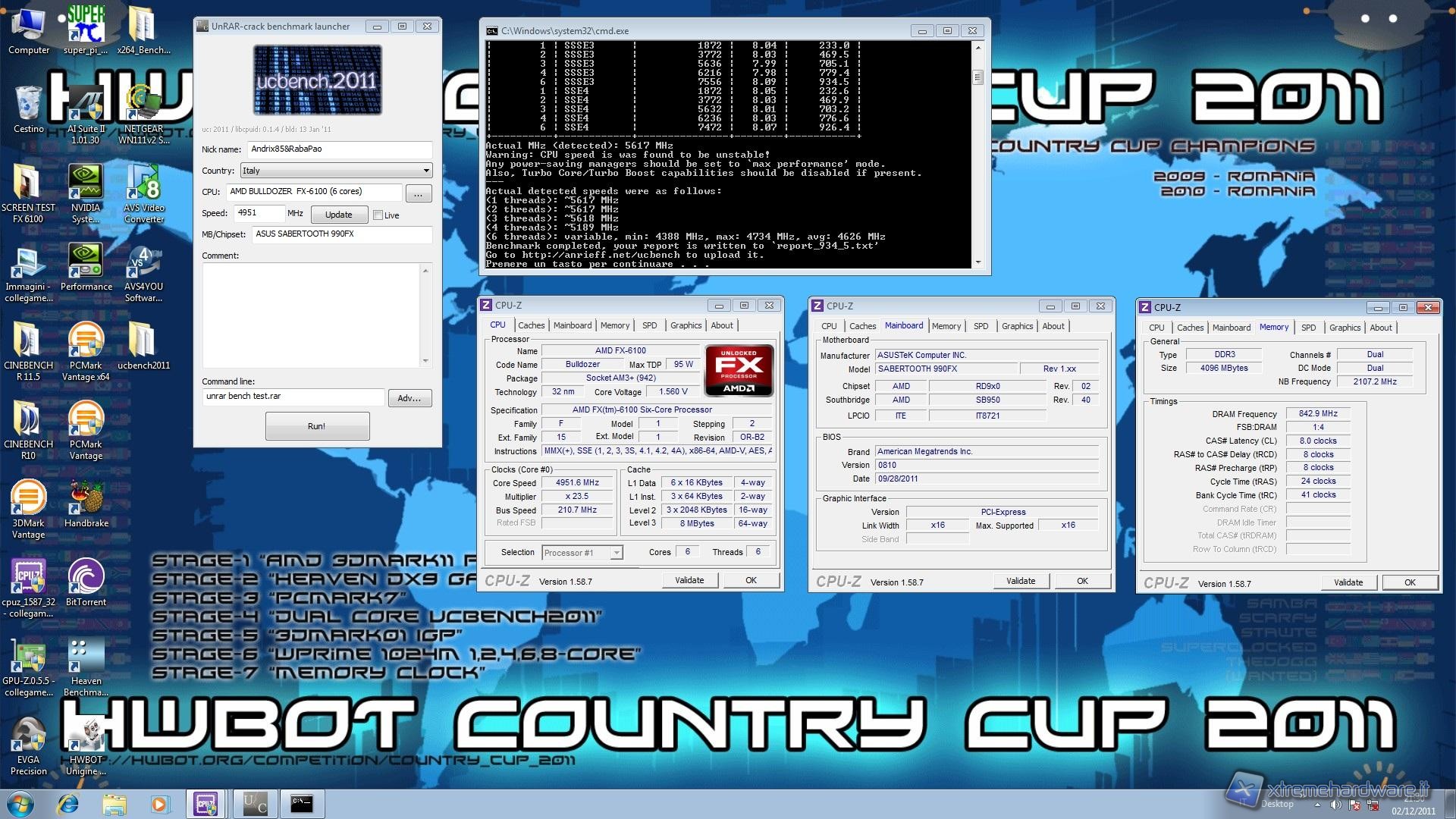 Altri test da noi eseguiti riguardano Superpi 1M e 32M, Wprime32M e 1024M, Uc Bench 2011 e PiFast.