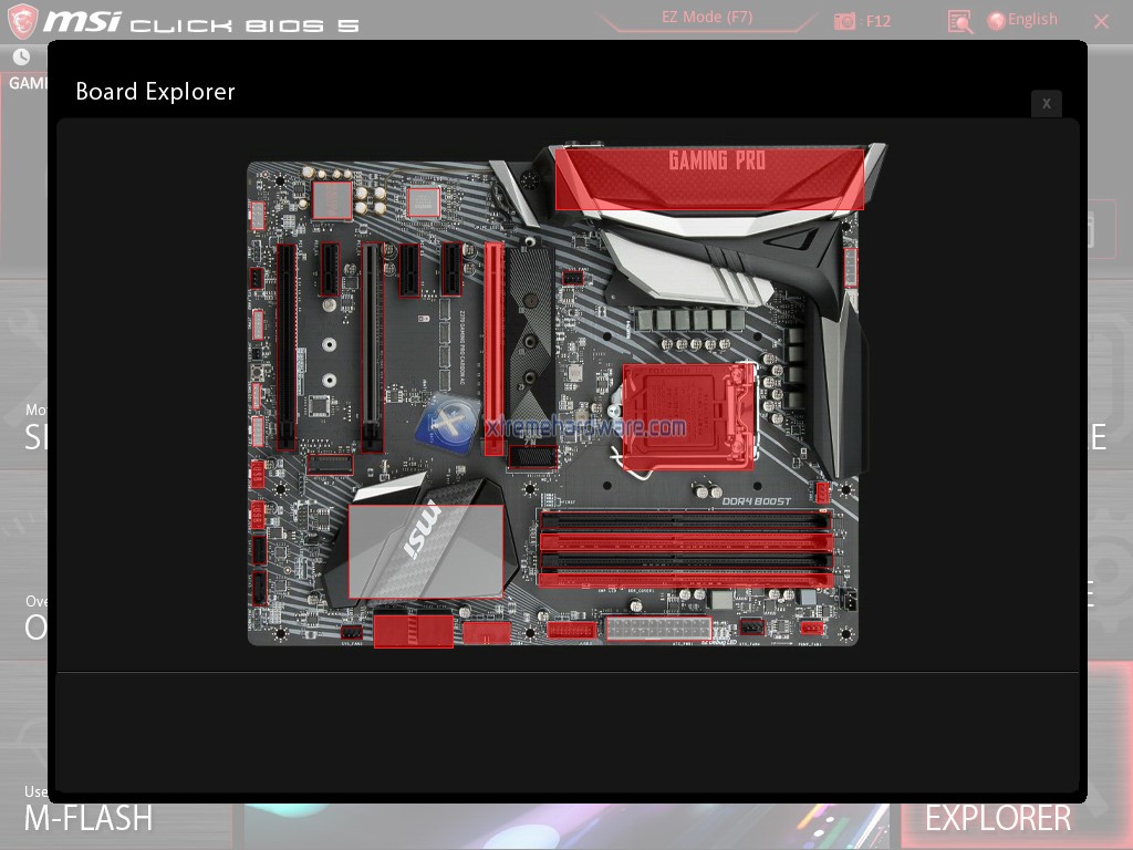 Passando alla modalità avanzata ci troveremo di fronte le classiche informazioni quali frequenza CPU, frequenza RAM, temperatura, versione BIOS etc nella parte superiore dello schermo mentre dal centro a seguire i sei Menù principali con relative sottovoci. I Menù sono sempre ‘’Settings’’, ‘’OC’’, ‘’M-Flash’’, ‘’OC Profile’’, ‘’Hardware Monitor’’ e ‘’Board Explorer’’.