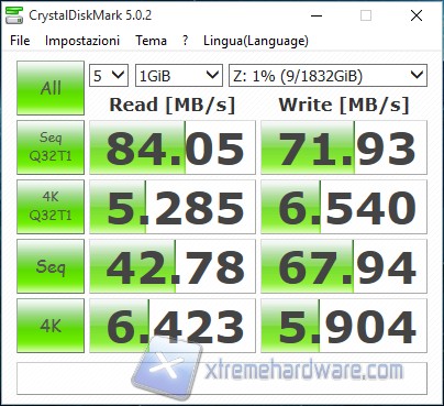 I risultati cambiano e prendono una forma più “rassicurante” controllando i numeri di CrystalDisk Mark.