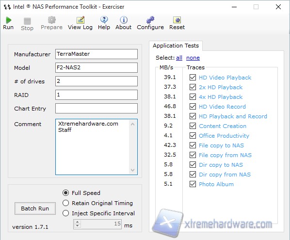 Questa suite è stata sviluppata da Intel appositamente per testare le performances dei Network Attached Storage. Tale applicazione effettua test in svariati ambiti riproducendo situazioni tipiche nell’utilizzo dei NAS, come ad esempio la riproduzione di contenuti multimediali, lo spostamento di file e cartelle o la visualizzazione di Photo Album.